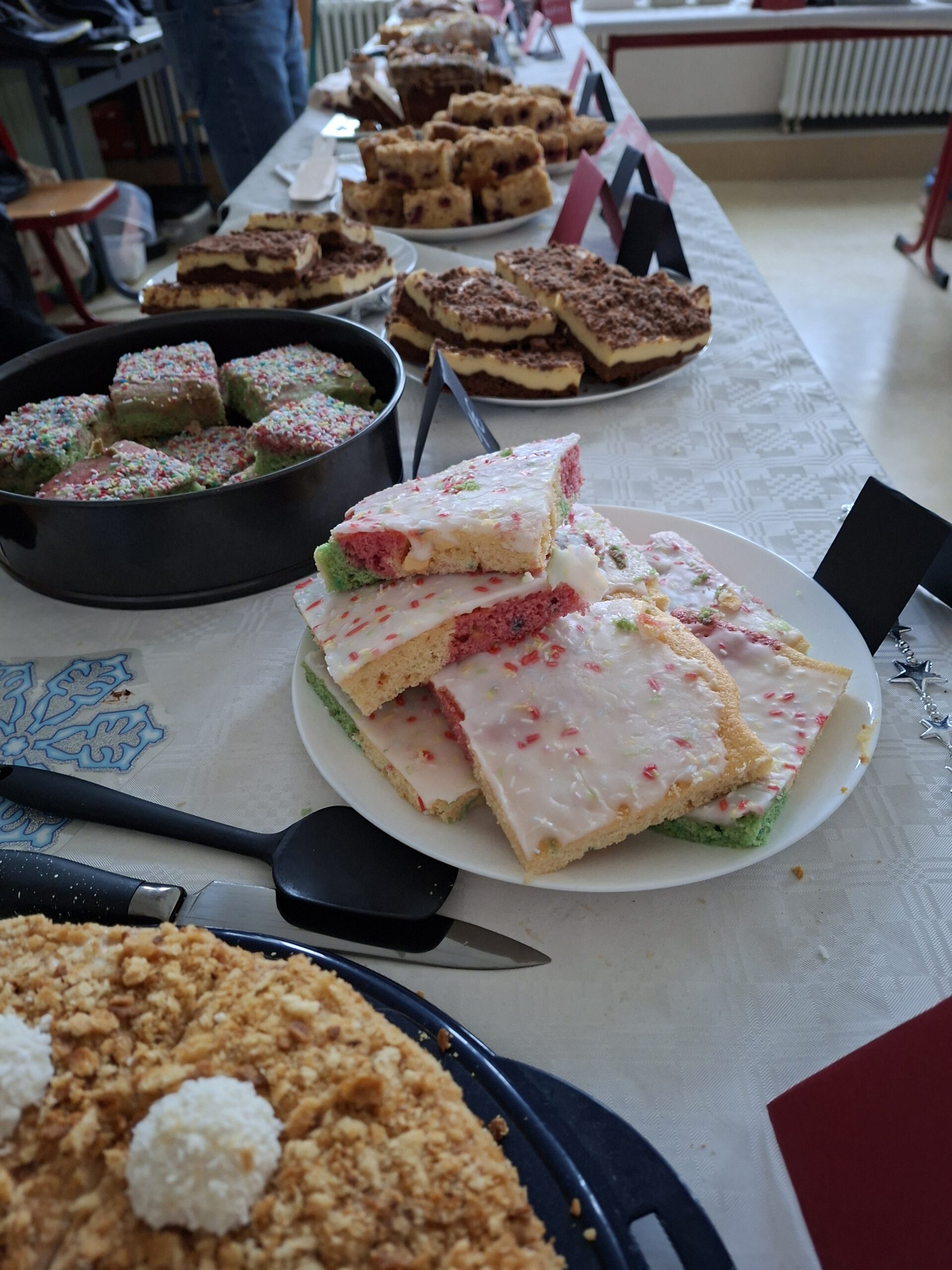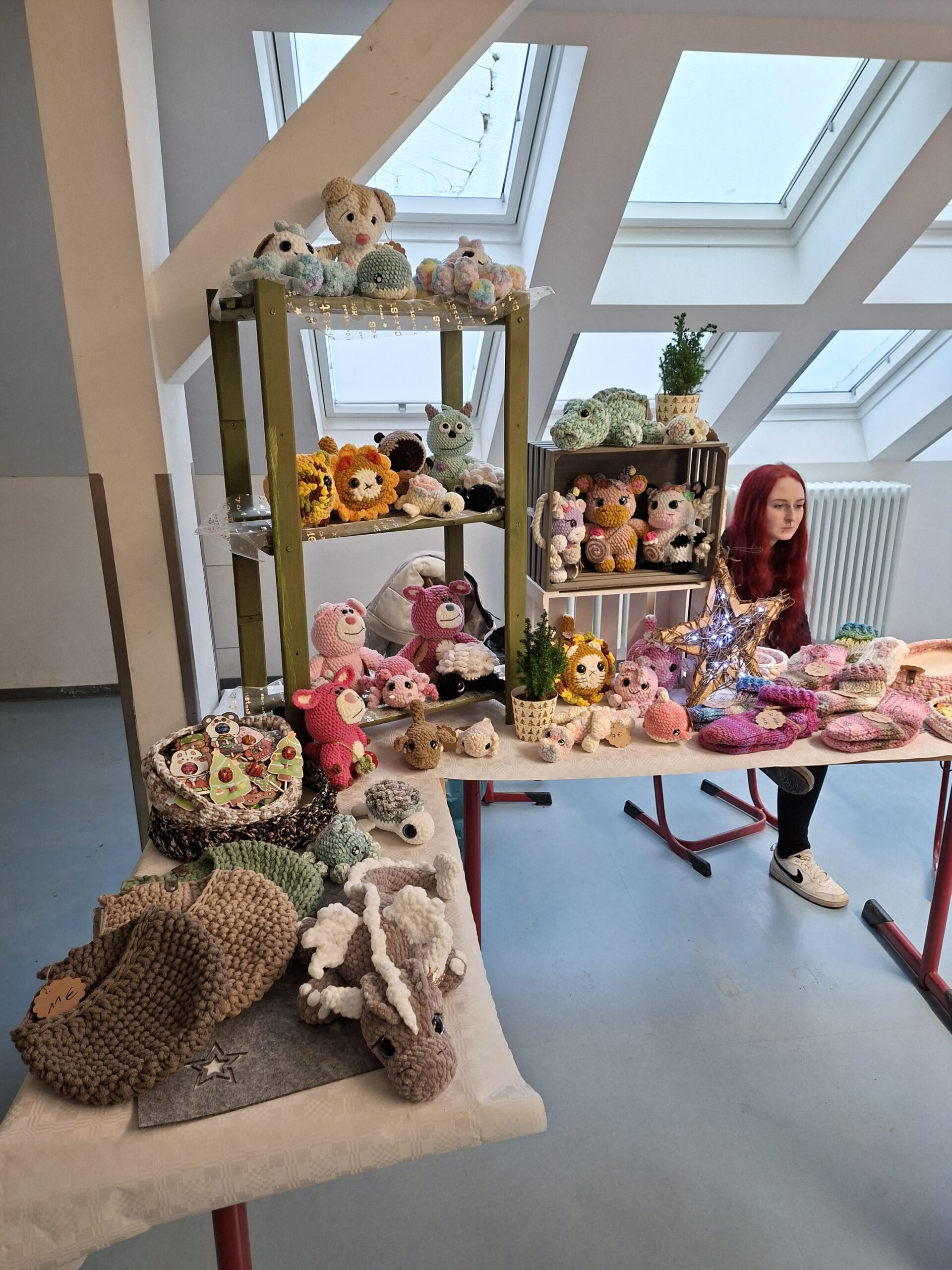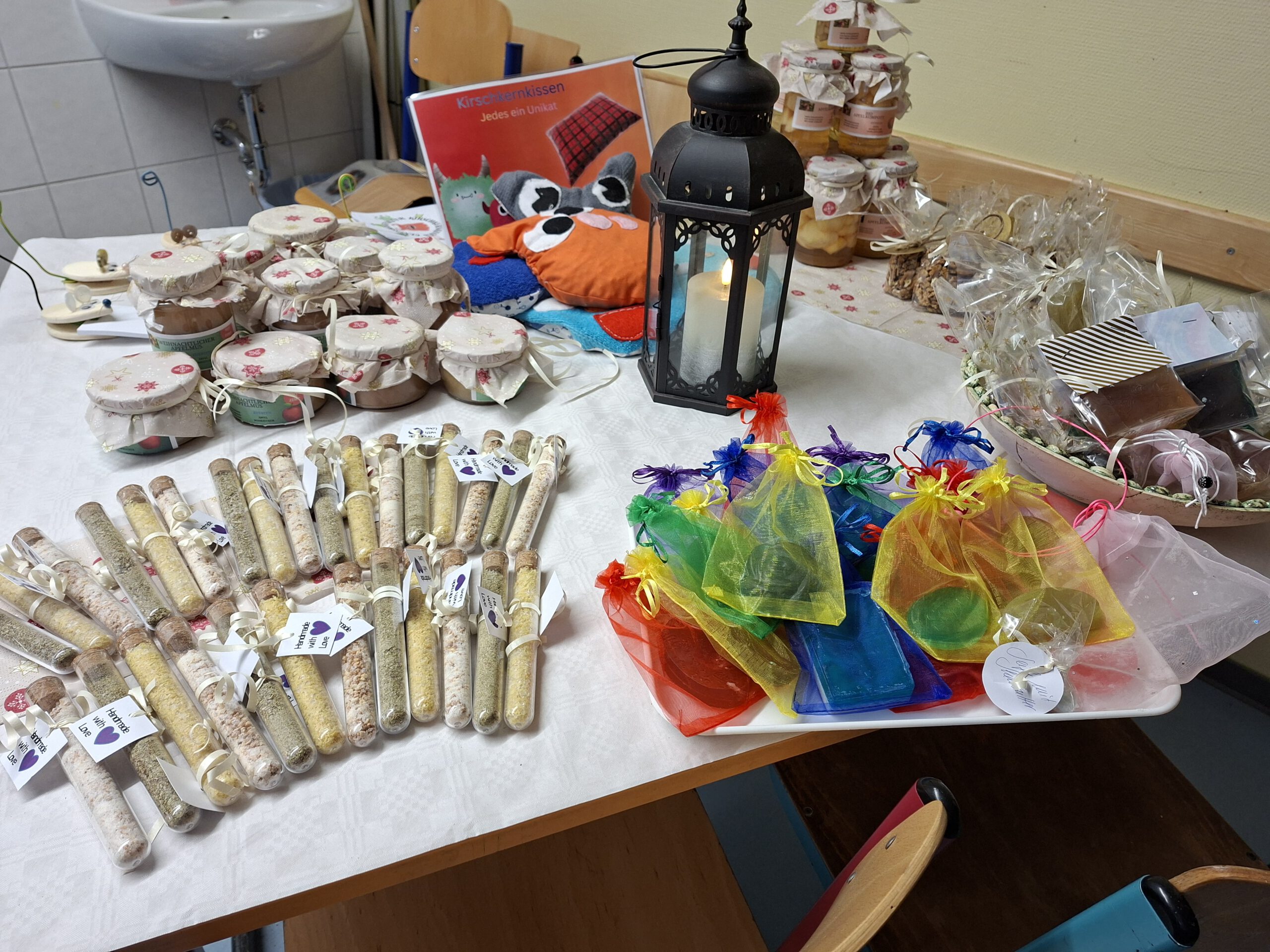 Zahlreiche Verkaufsstände luden zum Stöbern ein. Angeboten wurden kreative, handwerkliche und liebevoll gestaltete Produkte – darunter Gehäkeltes, Genähtes sowie weitere Bastelarbeiten, u.a. aus unserer Genussmanufaktur. Für das leibliche Wohl sorgten ein Kuchenverkauf, Hamburger, Glühwein und Popcorn, die bei Groß und Klein sehr beliebt waren.